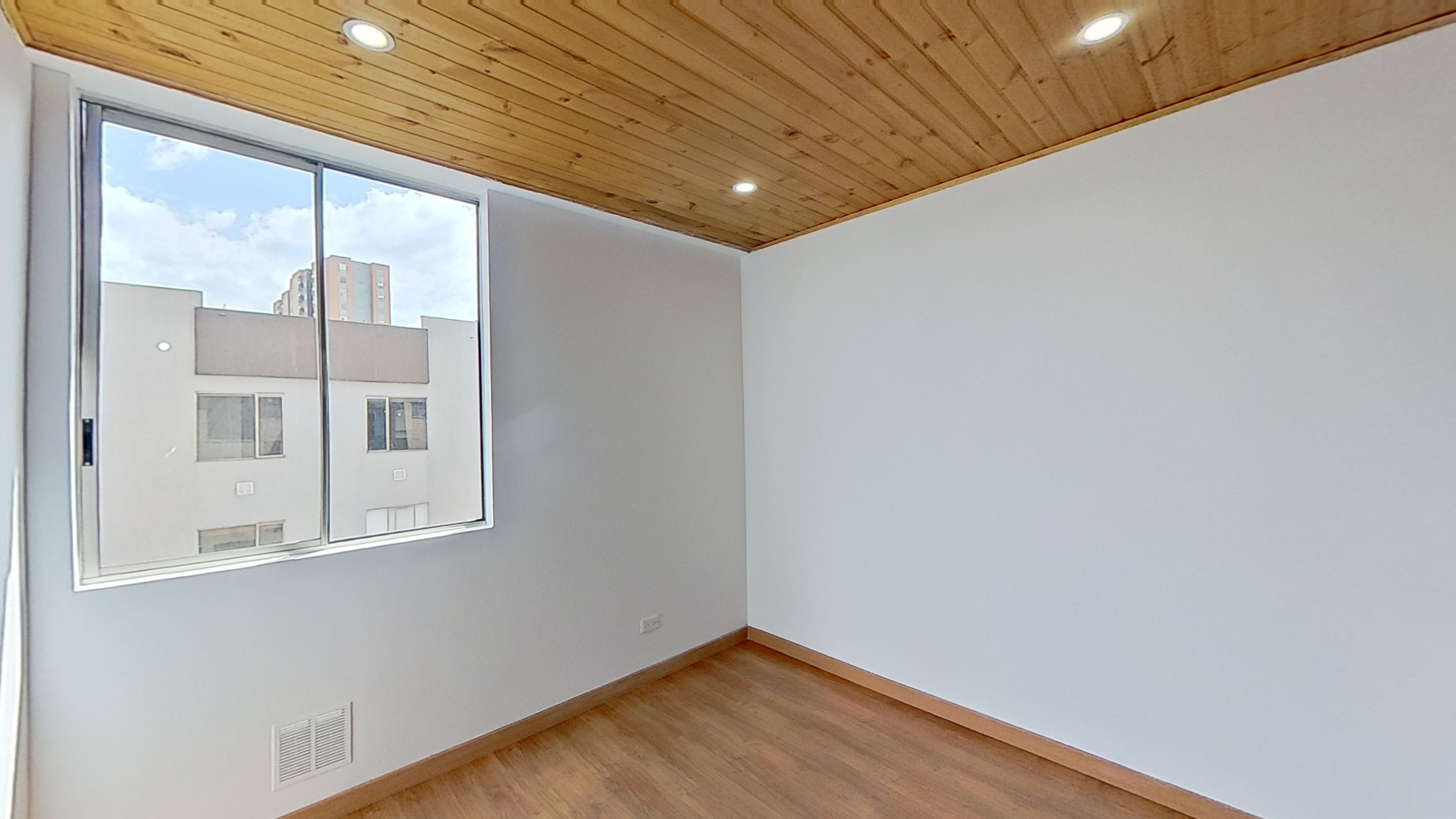 Apartamento en venta de 60M², con vista interior, ubicado en un 6to piso (Torre 2 Apto 601), acceso por escaleras y ascensor, parqueadero propio cubierto (15). Consta de 3 habitaciones, 2 baños, sala comedor, cocina y zona de lavandería. Tiene piso laminado en habitaciones y zona social y cerámico en baños y cocina. El Conjunto cuenta con salón comunal, zona de niños y vigilancia privada las 24 horas. Cerca a centro comercial Titán Plaza; cerca a almacenes de cadena como Ara y D1; cerca a colegios Morisco y Minuto de Dios; cerca a Corporación Universitaria Minuto de Dios; cerca a Paraderos del SITP; Vías de acceso por la Calle 94 y Carrera 72A.